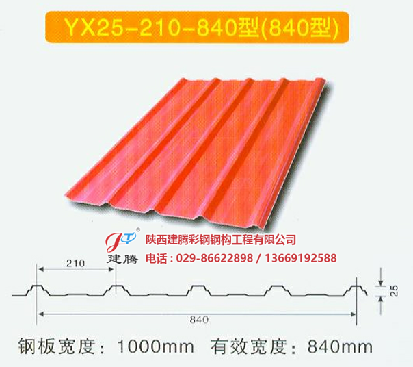 YX25-210-840產品的基板為冷軋基板,熱鍍鋅基板和電鍍鋅基板。涂層種類可分為聚酯、硅改性聚酯、偏聚二氟乙烯和塑料溶膠。彩鋼板的表面狀態(tài)可分為涂層板、壓花板和印花板,彩鋼板廣泛用于大型公共建筑、公共廠房、活動板房、及集成房屋的墻面和屋面、交通運輸?shù)刃袠I(yè),對于建筑業(yè)主要用于鋼結構廠房、機場、庫房和冷凍等工業(yè)及商業(yè)建筑的屋頂墻面和門等。