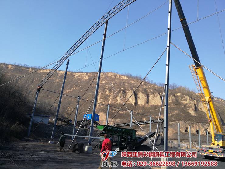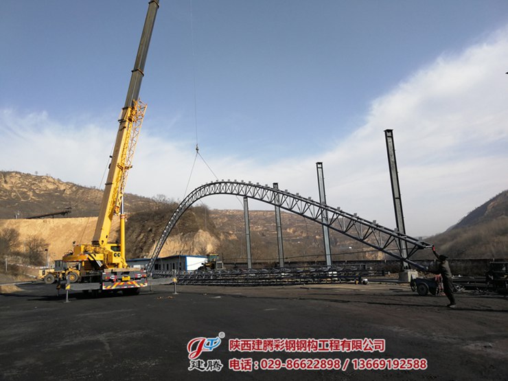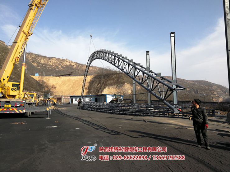 位于陜西省咸陽市旬邑縣席家山煤礦,四千多平方的鋼結(jié)構(gòu)圓弧大棚,45米超大跨度梁安裝進(jìn)行中........