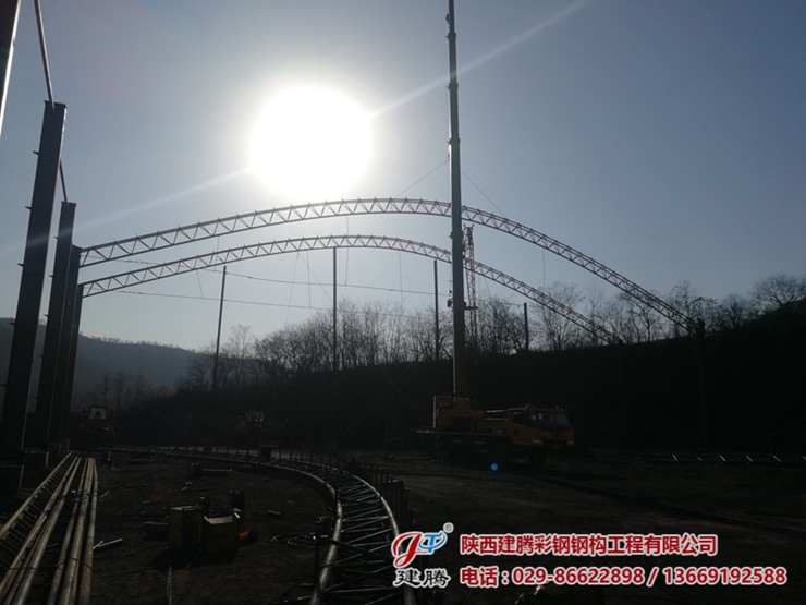 旬邑縣席家山煤礦鋼結(jié)構(gòu)圓弧大棚在建中