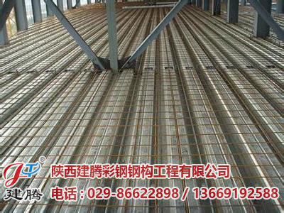 鋼筋桁架樓承板是屬于無支撐壓型組合樓承板的一種;鋼筋桁架是在后臺加工場定型加工,采用硅烷化、磷化、水洗、鍍鋅等除銹防銹工藝,現(xiàn)場施工需要先將桁架樓承板擺放到正確位置,焊接制作鋼筋,后焊接栓釘,再放置鋼筋桁架進行綁扎,防銹膜纏繞密封。